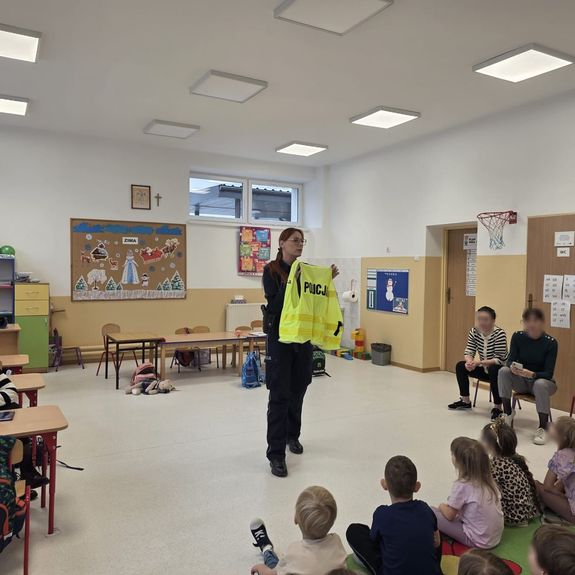 Policjantka z łęczyckiej komendy w trosce o bezpieczeństwo najmłodszych spotkała się z przedszkolakami ze szkoły podstawowej w Piaskach. Podczas wizyty omówiła uczniom i przedszkolakom zasady bezpiecznego zachowania w domu i na drodze. W ramach akcji „Świeć Przykładem” podkreślała znaczenie używania elementów odblaskowych.