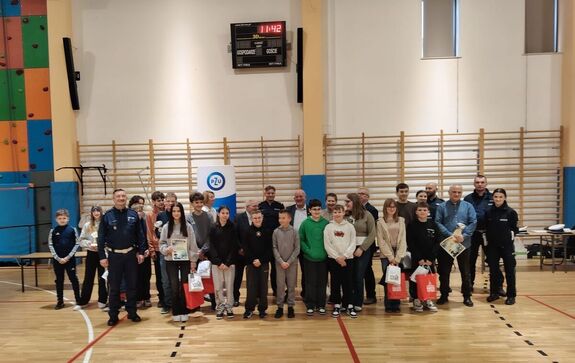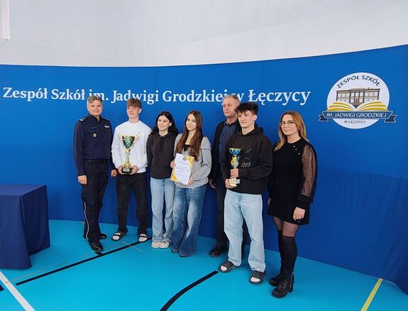 14 kwietnia 2026 roku na trenie Zatoki Sportu Politechniki Łódzkiej odbył się VI Finał Turnieju o Puchar Komendanta Wojewódzkiego Policji w Łodzi. Główna nagroda trafiła do uczniów z Zespołu Szkół imienia Jadwigi Grodzkiej w Łęczycy! Najlepszym zawodnikiem okazał się Filip Suski. Gratulację zwycięskiej drużynie przekazał Komendant Powiatowy Policji w Łęczycy młodszy inspektor Rafał Mrozowski. Dziękujemy, jesteśmy z Was dumni!