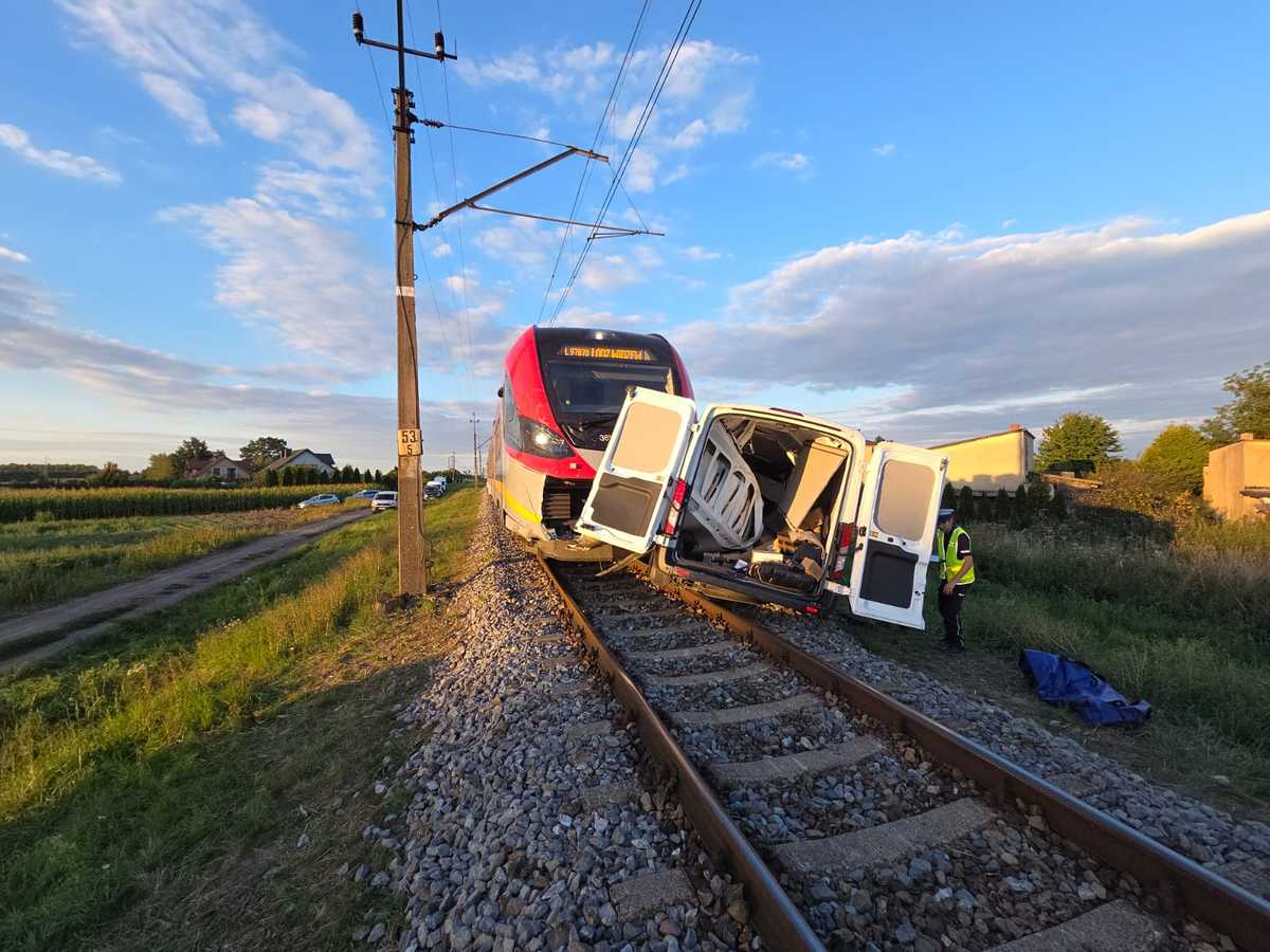 O ogromnym szczęściu może mówić kierowca forda transita, który doprowadził do zderzenia z pociągiem. Apelujemy o o zachowanie szczególnej ostrożności podczas pokonywania przejazdów kolejowych.