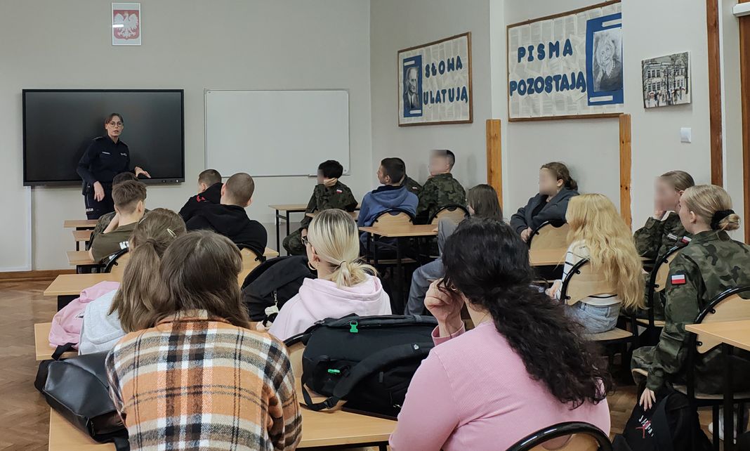 Uczniowie aktywnie uczestniczyli w dyskusji, zadając pytania i dzieląc się swoimi spostrzeżeniami. Spotkanie miało na celu podniesienie świadomości młodzieży na temat bezpieczeństwa oraz budowanie postaw odpowiedzialności i wzajemnego szacunku.