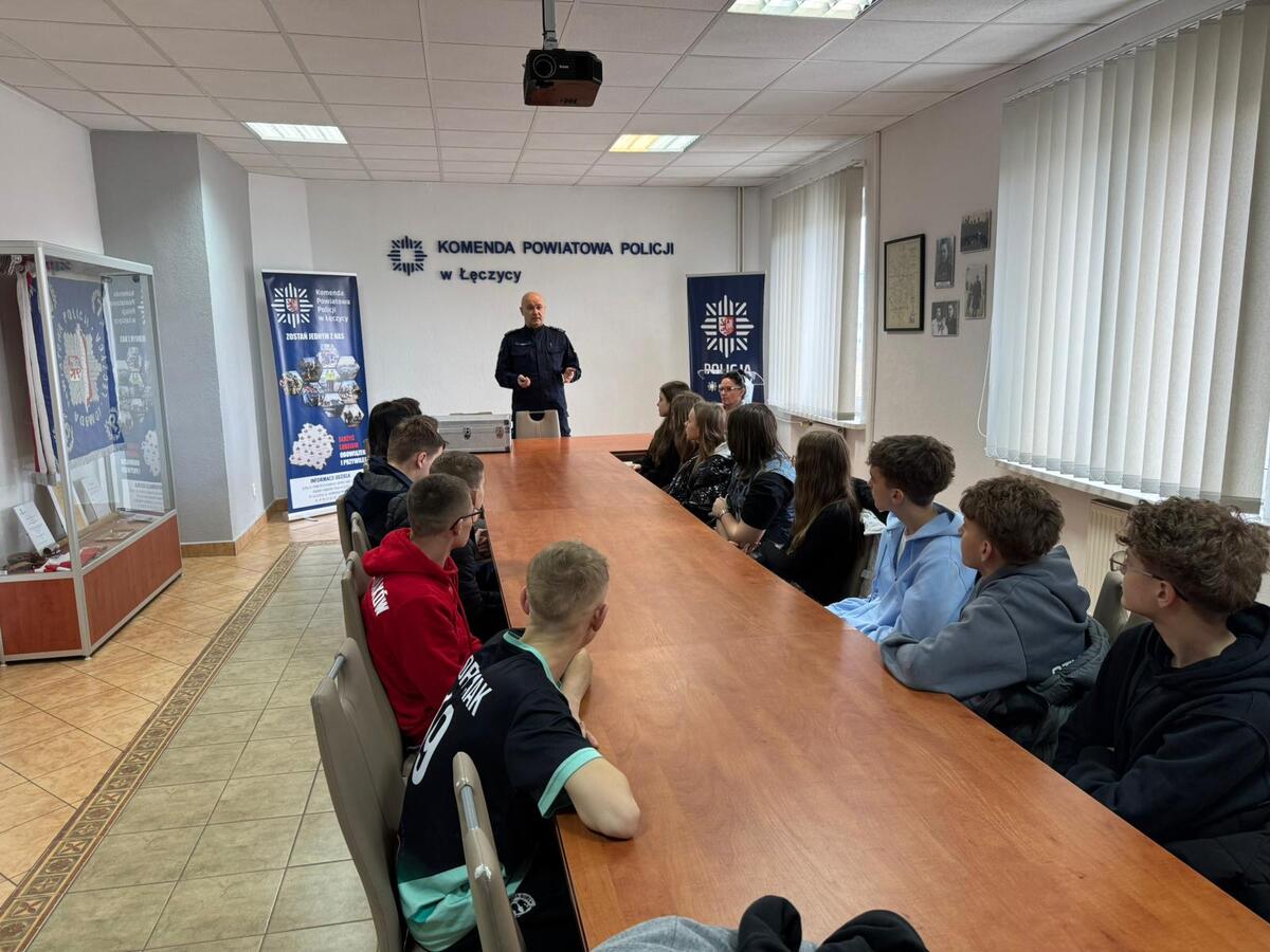 17 marca 2026 roku w ramach lekcji z doradztwa zawodowego uczniowie klasy 7 szkoły podstawowej numer 4 w Łęczycy zawitali do łęczyckiej komendy policji. W trakcie zajęć młodzież dowiedziała się między innymi czym zajmuje się na co dzień policja, w jakich mundurach policjanci pełnią służbę i z jaką odpowiedzialnością się wiąże. Słuchaczom wyjaśniono specyfikę pracy dzielnicowego, który potocznie nazywany jest policjantem pierwszego kontaktu oraz jakim kolorem różnią się elementy umundurowania używane przez policjantów czuwający nad bezpieczeństwem w ruchu drogowym. Nie zabrakło informacji o stróżach prawa niekorzystających na co dzień z mundurów. Rozmowy toczyły się wokół wyposażenia używanego przez policjantów oraz używanych środkach transportu. Poza procesem rekrutacji do służby w policji uczniowie uzyskali też informacje o wymaganym wykształceniu, umiejętnościach i predyspozycjach, które w przyszłości mogą ułatwić im pracę w tym zawodzie.